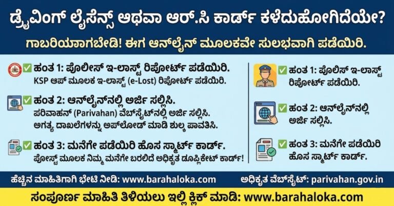 ಕಳೆದುಹೋದ Driving Licence ಮತ್ತು RC Card ಮತ್ತೆ ಪಡೆಯುವುದು ಹೇಗೆ? ಸಂಪೂರ್ಣ ಮಾರ್ಗದರ್ಶಿ (2026 Complete Guide) ಇಂದಿನ ಡಿಜಿಟಲ್ ಯುಗದಲ್ಲಿ ನಮ್ಮ ಪ್ರಮುಖ ದಾಖಲೆಗಳು …