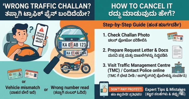 ತಪ್ಪಾಗಿ ಬಂದ ಟ್ರಾಫಿಕ್ ಫೈನ್ (Traffic Challan) ರದ್ದು ಮಾಡುವುದು ಹೇಗೆ? ಸಂಪೂರ್ಣ ಮಾರ್ಗದರ್ಶಿ 2026 ಟ್ರಾಫಿಕ್ ನಿಯಮಗಳ ಉಲ್ಲಂಘನೆಗಾಗಿ ದಂಡ ವಿಧಿಸುವುದು ಸಾಮಾನ್ಯ. ಆದರೆ, ಕೆಲವೊಮ್ಮೆ …