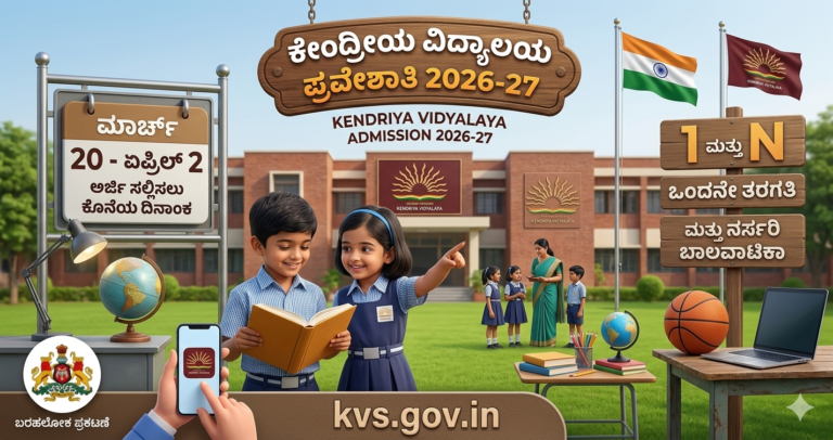 ಕೇಂದ್ರೀಯ ವಿದ್ಯಾಲಯ ಪ್ರವೇಶಾತಿ 2026-27: ಅರ್ಜಿ ಸಲ್ಲಿಕೆ ವಿಧಾನ, ವಯೋಮಿತಿ ಮತ್ತು ಪ್ರಮುಖ ದಿನಾಂಕಗಳ ಸಂಪೂರ್ಣ ಮಾಹಿತಿ ಪೀಠಿಕೆ ಭಾರತದ ಅತ್ಯಂತ ಪ್ರತಿಷ್ಠಿತ ಶಿಕ್ಷಣ ಸಂಸ್ಥೆಗಳಲ್ಲಿ ಒಂದಾದ …