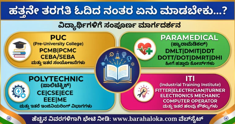 10ನೇ ತರಗತಿಯ ನಂತರದ ಕೋರ್ಸ್ಗಳ UPDATE ಪಟ್ಟಿ (2026-27): ನಿಮಗೆ ಯಾವುದು ಉತ್ತಮ? 10ನೇ ತರಗತಿಯನ್ನು ಯಶಸ್ವಿಯಾಗಿ ಪೂರ್ಣಗೊಳಿಸಿದ ನಿಮಗೆ ಅಭಿನಂದನೆಗಳು! 🎓 ಇದು ನಿಮ್ಮ ವಿದ್ಯಾಭ್ಯಾಸದ …