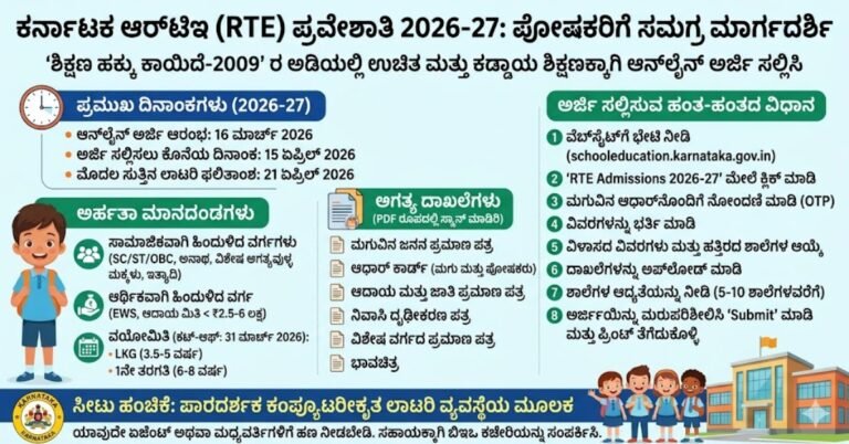 ಕರ್ನಾಟಕ ಆರ್ಟಿಇ (RTE) ಪ್ರವೇಶಾತಿ 2026-27: ಪೋಷಕರಿಗೆ ಸಮಗ್ರ ಮಾರ್ಗದರ್ಶಿ ಭಾರತೀಯ ಸಂವಿಧಾನದ 21-ಎ ವಿಧಿಯ ಅಡಿಯಲ್ಲಿ ಜಾರಿಗೆ ಬಂದ ‘ಶಿಕ್ಷಣ ಹಕ್ಕು ಕಾಯಿದೆ-2009’ (Right to …