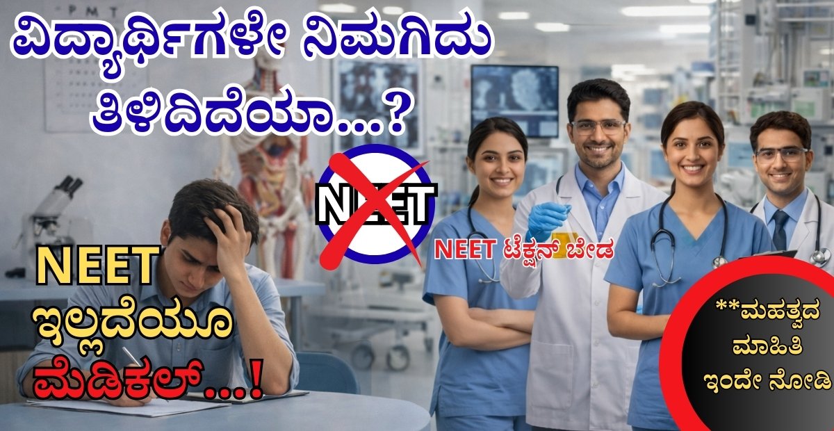 ✔ NEET ಪರೀಕ್ಷೆ ಇಲ್ಲದೆ 12ನೇ ನಂತರ ವೈದ್ಯಕೀಯ ಕ್ಷೇತ್ರಕ್ಕೆ ಪ್ರವೇಶ